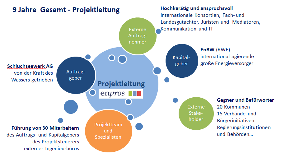 Seit dem Projektstart 2009 bis zum Projektende 2017 wurde enpros mit der Gesamtprojektleitung, dem Genehmigungsmanagement und Tätigkeiten in verschiedenen Leistungsbereichen von der Schluchseewerk AG beauftragt.